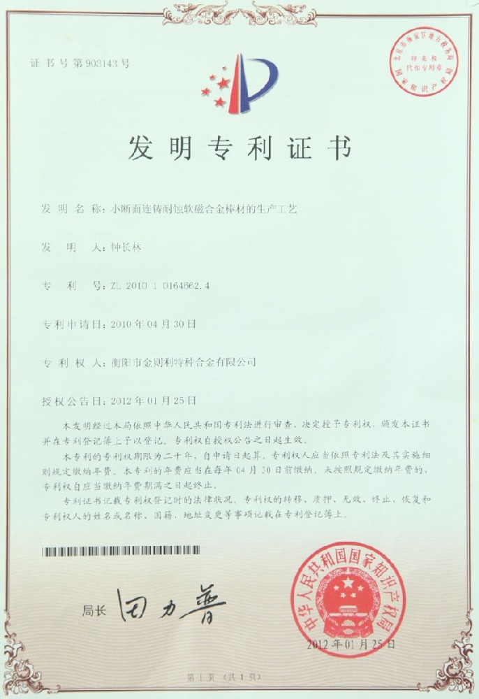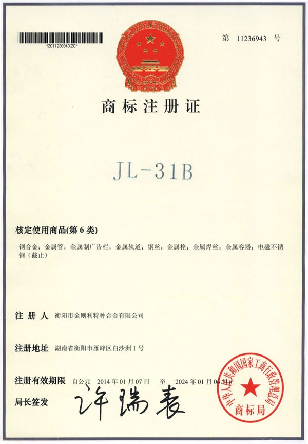 衡陽市金則利特種合金股份有限公司成立于一九九九年十二月,注冊資本人民幣兩千兩百萬元。注冊地址:衡陽市雁峰區(qū)白沙洲工業(yè)園長塘路2號。公司主營耐蝕軟磁合金,為湖南省高新技術(shù)企業(yè)。公司自成立以來,即致力于耐蝕軟磁合金的研發(fā)。 研制出的JL-31(00Cr13si2Pb)、JL-31B(00Cr13si2)、JL-31BS(00Cr13Si2S)、JL-37B(0Cr17Si2)、JL-37(0Cr17···